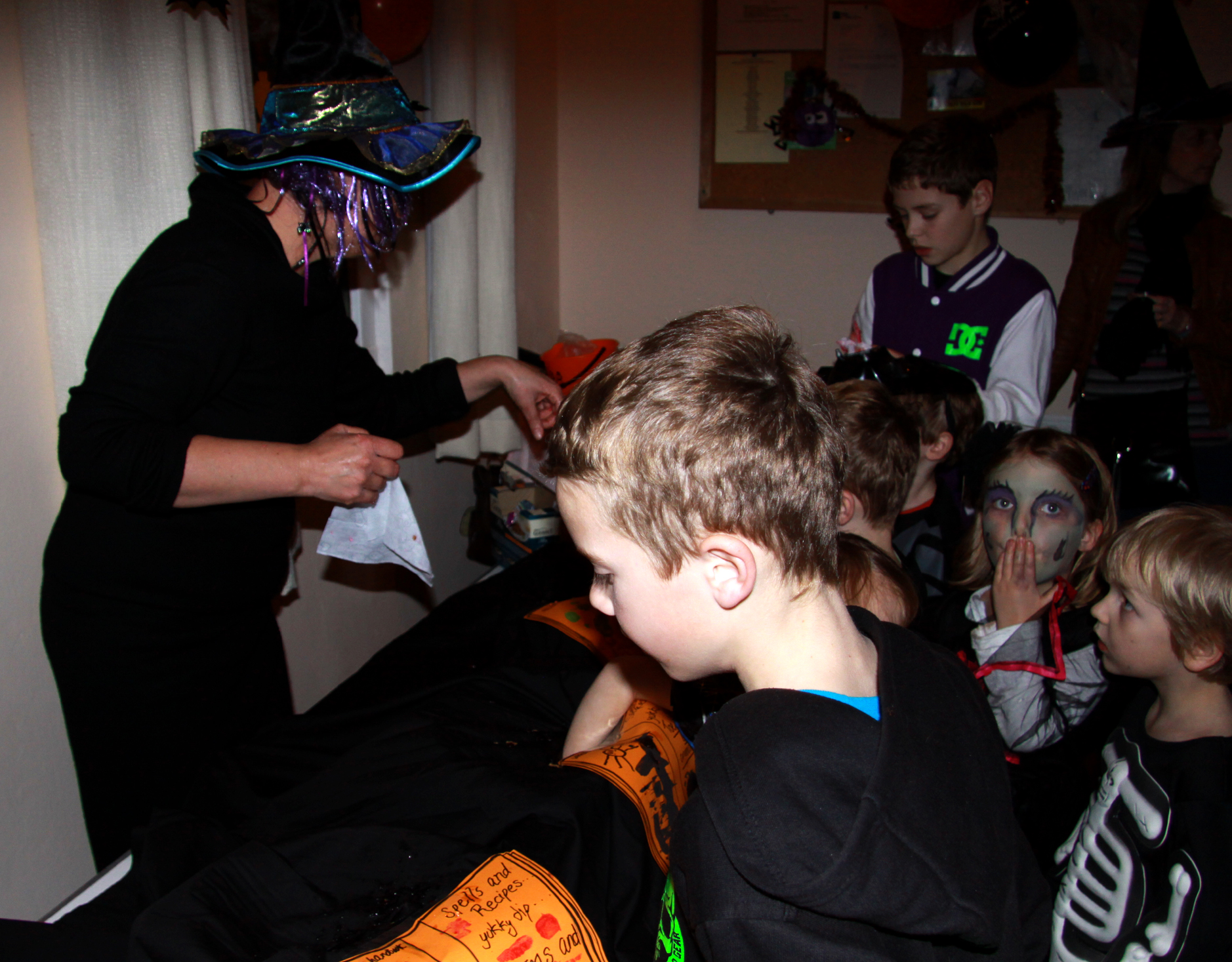 Adrian was the craftsman of the party and witches, batmen, skeletons, spidermen and tiny little pumpkins did just what he said. If he said jump, they would all jump; if he said time to dance they would all dance to the rhythm of YMCA, The Ghostbusters and some other pop hymns.