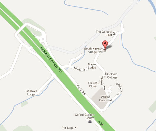 The Village Hall is on Manor Road, on the right and near the far end as one enters the village. The postcode is OX1 5AS.